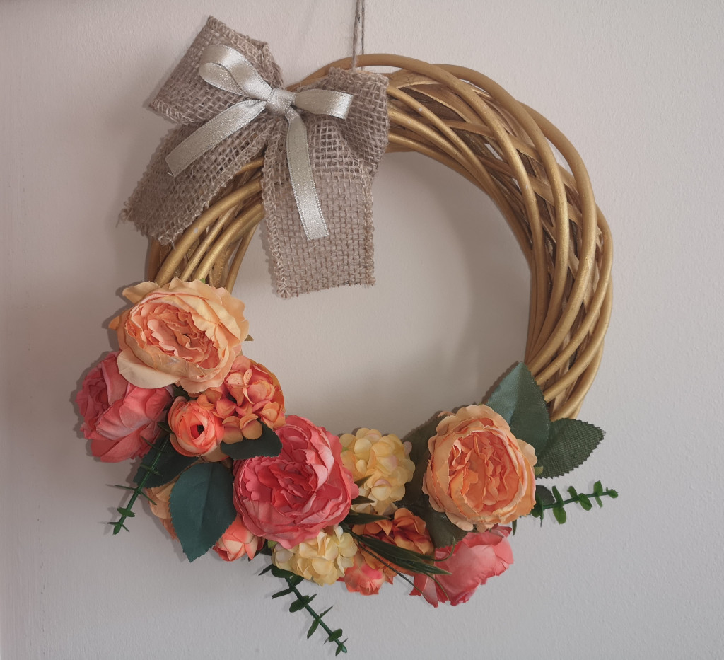 Dupla masnis, élénk színű, vidám hangulatot sugárzó tavaszi kopogtató.